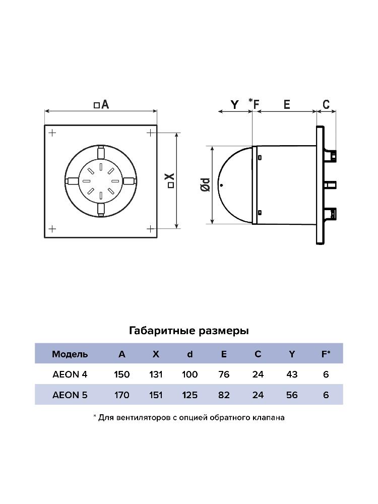 Вентилятор накладной AEON D100 обр.клапан MRH DICITI